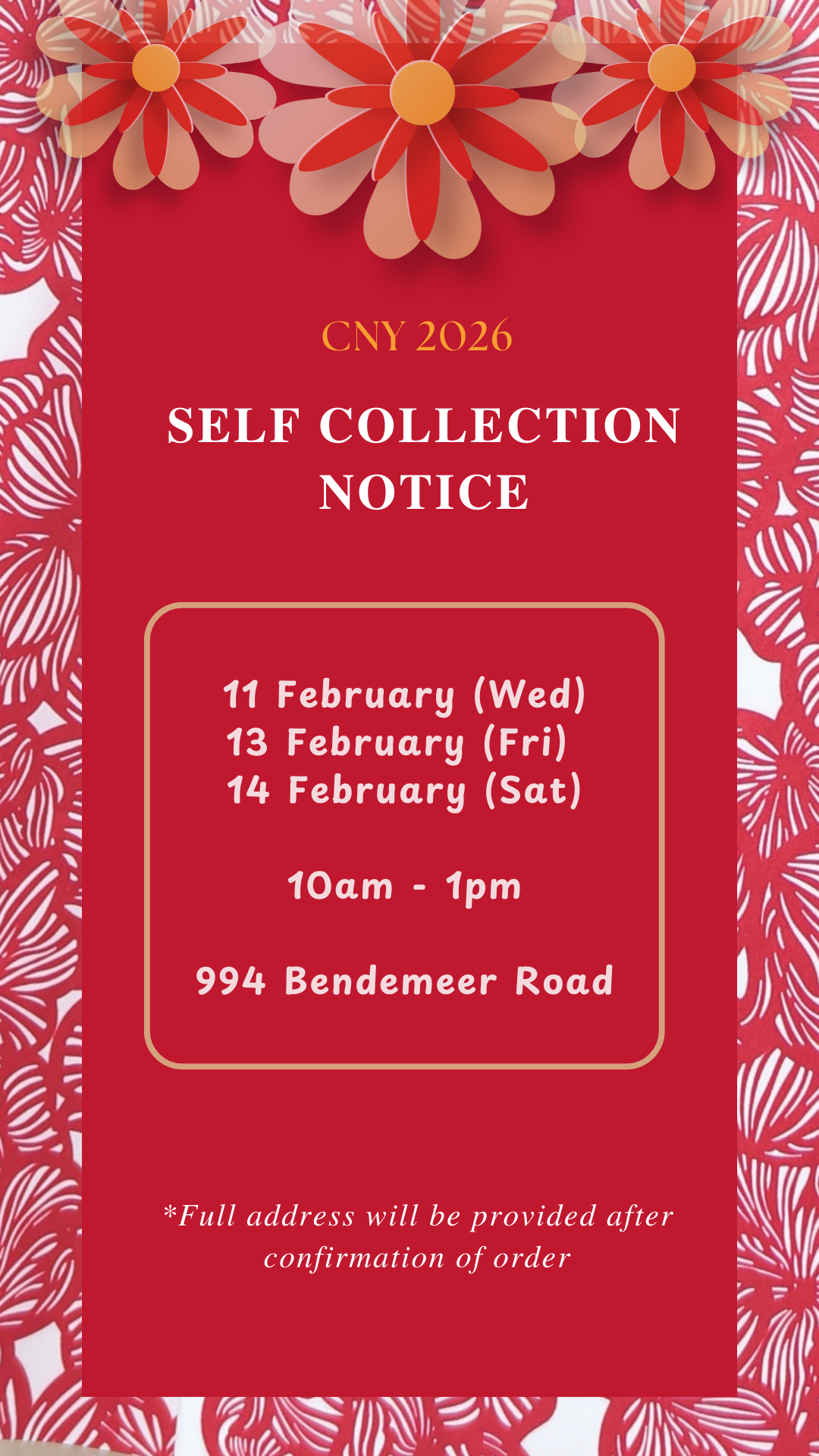 *We are unable to deliver to the following locations including (but not limited to) Sentosa, Jurong Island, ports, airport. You will be contacted for an alternate shipping address should your address fall under the above-mentioned locations.